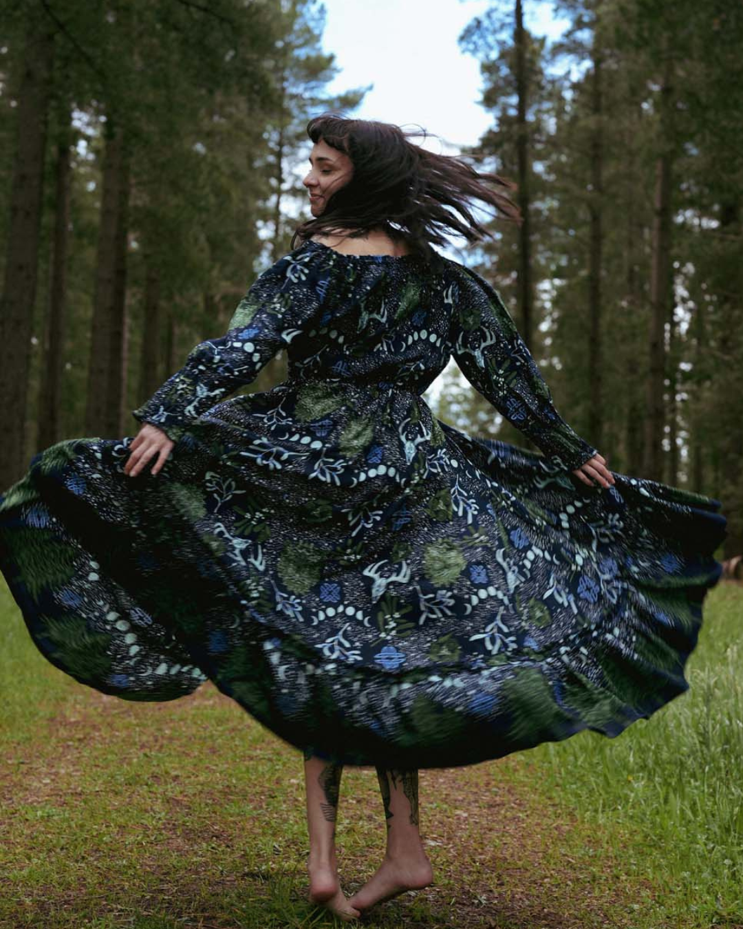 The Longest Night Collection honours the magic of the winter solstice where darkness deepens and ancient light begins to return. Pine forests, starry skies, moon cycles and Yuletide mysticism weave through in a spell of dark romantic beauty.