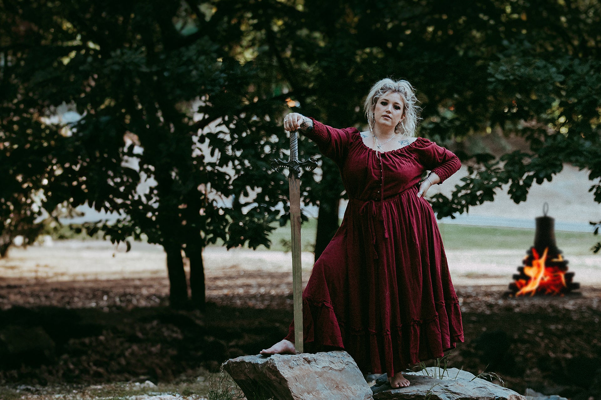 Valhalla drew inspiration from visual dramatics, Norse iconography, and sacred spiritual beliefs of the era, blending them with the epic terrain and formidable strength to creatively modernize the concept of the shield maiden.