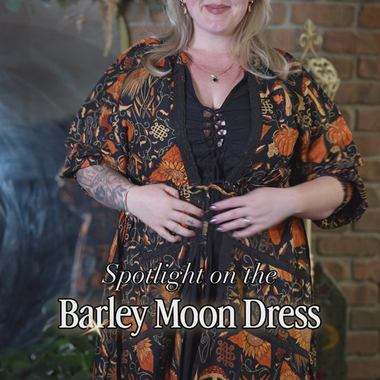 Crafted in hand-illustrated, screen-printed fabric, the Barley Moon Dress is an iconic staple; timeless, versatile, and destined to be loved for ages to come.