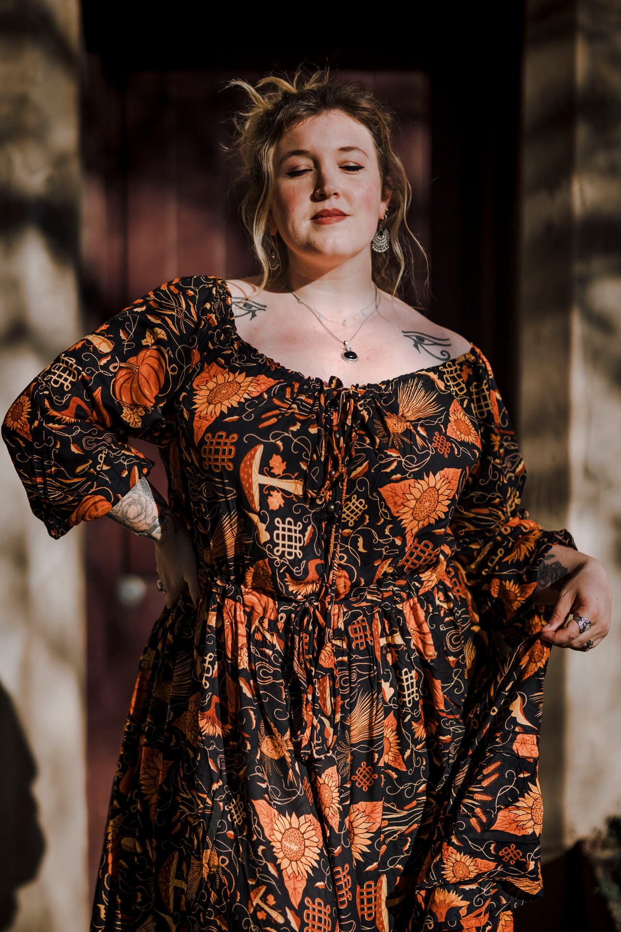 Step into the whimsical romance of autumn with this enchanting midi dress!