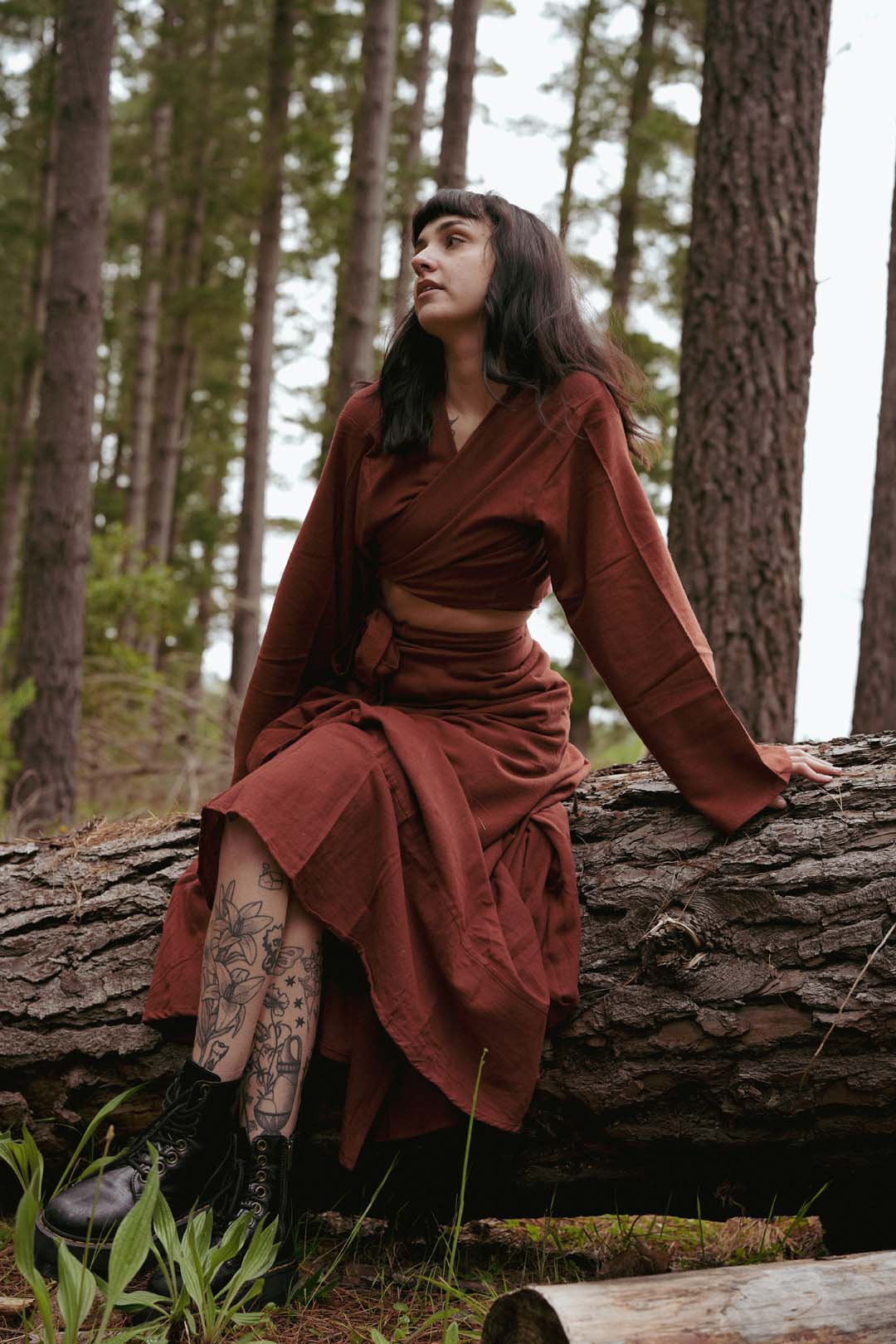 Sustainable hemp cotton, hand wash, cold wash, line dry. Always read the care label inside the garment. Item can be ironed on low heat but we recommend steaming for all special garments!